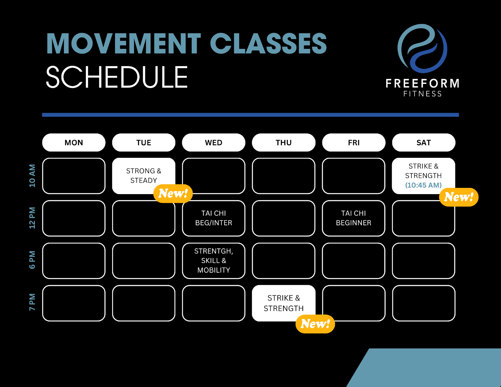 Perfect for all ages and fitness levels, Tai Chi is both restorative and empowering — supporting joint health, improving posture, and promoting longevity. Whether you’re seeking a powerful complement to other training or a standalone wellness practice, Tai Chi offers a path to greater resilience, focus, and overall well-being.