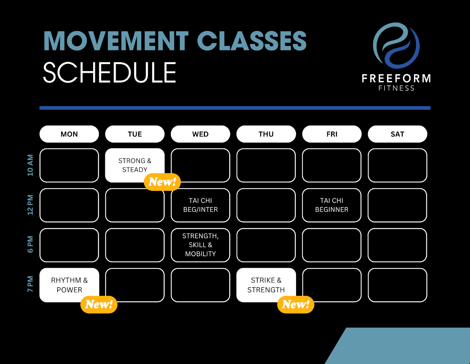 Sessions available 3x/week (morning, midday, or evening options)